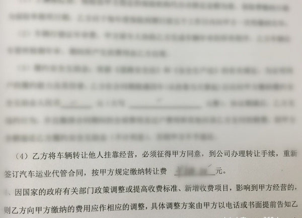 用戶掛靠公司那么就會(huì)產(chǎn)生管理費(fèi)用,這個(gè)管理費(fèi)全國(guó)各地的收費(fèi)都不一樣,國(guó)家也沒有統(tǒng)一的收費(fèi)規(guī)定。用戶在選擇公司的時(shí)候也多對(duì)比一下。同時(shí)掛靠公司還會(huì)強(qiáng)制要求代買車輛保險(xiǎn),大家也知道買保險(xiǎn)是有回扣的,當(dāng)然這錢也不能白賺,當(dāng)車輛出現(xiàn)事故的時(shí)候,從事故處理到保險(xiǎn)理賠基本上都會(huì)由公司搞定。除此之外,像年審、補(bǔ)辦證件、二級(jí)維護(hù)保養(yǎng)等項(xiàng)目也基本上都由掛靠公司代辦,有些公司補(bǔ)辦證件的收費(fèi)也高達(dá)好幾百元,所以用戶在簽約時(shí)最好能夠看清楚。