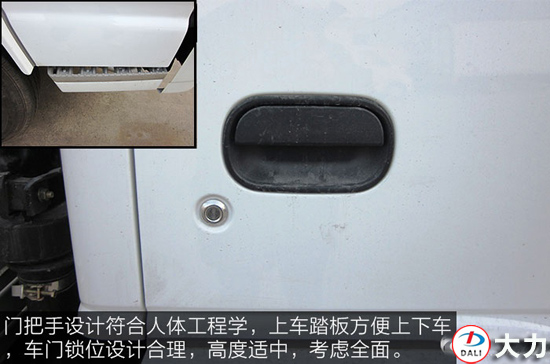 門把手設(shè)計符合人體工程學(xué),上車踏板方便上下車,車門鎖位設(shè)計合理,高度適中,考慮全面。