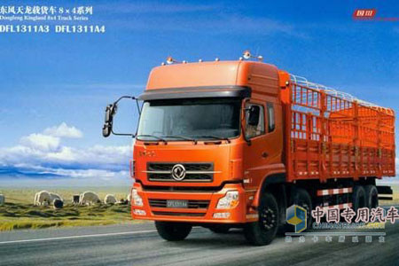 東風(fēng)天龍DFL1311A3\DFL1311A4 載貨車8*4系列,是東風(fēng)商用車公司積聚國際重型平板運(yùn)輸專業(yè)領(lǐng)域經(jīng)驗、針對中長途高速運(yùn)輸行業(yè)開發(fā)設(shè)計的車型,全車總成匹配合理,技術(shù)成熟,品質(zhì)穩(wěn)定,高速運(yùn)輸較對手同類產(chǎn)品油耗最低,對多山、多坡、丘陵地區(qū)有很好的行駛能力。