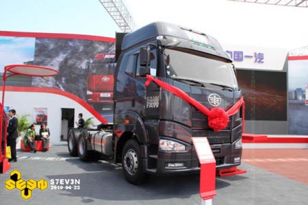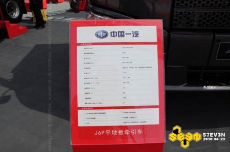 在2010年北京車展上,解放又展出了一輛平地板的J6,配置與第1000萬輛下線儀式上的那輛相同。只是涂裝顏色不同。但這次又被命名為“J6P平地板牽引車”。