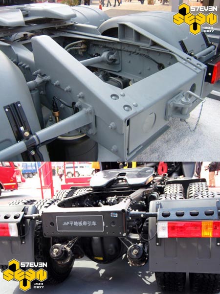 解放J6HC的車架結(jié)構(gòu)似乎是來源于三菱FUSO。而驅(qū)動橋則是來源于UD(當(dāng)年的日產(chǎn)柴)的485橋。如今的J6H仍然匹配485橋,車架似乎改進了。