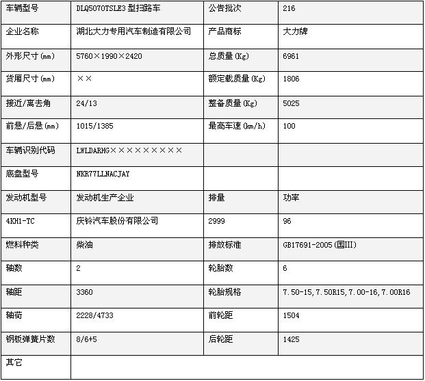 湖北大力最新公告產(chǎn)品:慶鈴五十鈴道路清掃車