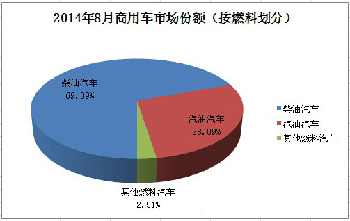 其中,按汽車燃料劃分,柴油汽車銷售171676輛,汽油汽車銷售69595輛,其他燃料汽車銷售6218輛,分別占8月商用車總銷量的69.39%、28.09%和2.51%。