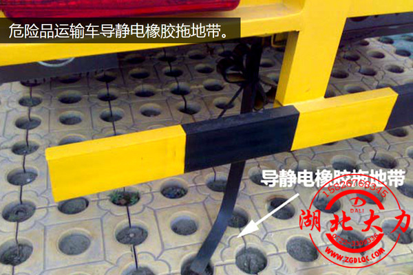 國家對危運車輛使用的導靜電拖地帶有明文規(guī)定,單車必須裝一根靜電帶,掛車裝三根(主車一根、掛車前后各一根),并要求所有的靜電帶空、重車和停駛都必須拖地。特別提醒:如果車身或車廂較長、較寬可根據(jù)實際需要多安裝一條或幾條導靜電拖地帶。