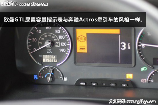 同時奔馳的阿克托斯的尿素液位指示表也采用此種形式,但是奔馳的儀表整體要比歐曼GTL的簡潔的多。