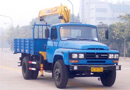 該車上裝選裝折臂式吊機;吊機型號,質(zhì)量,最大起升載荷分別為SQ-403:1400Kg,4000Kg;SQ-303:1250Kg,3000Kg;SQ-303Z:1300Kg,3000Kg。